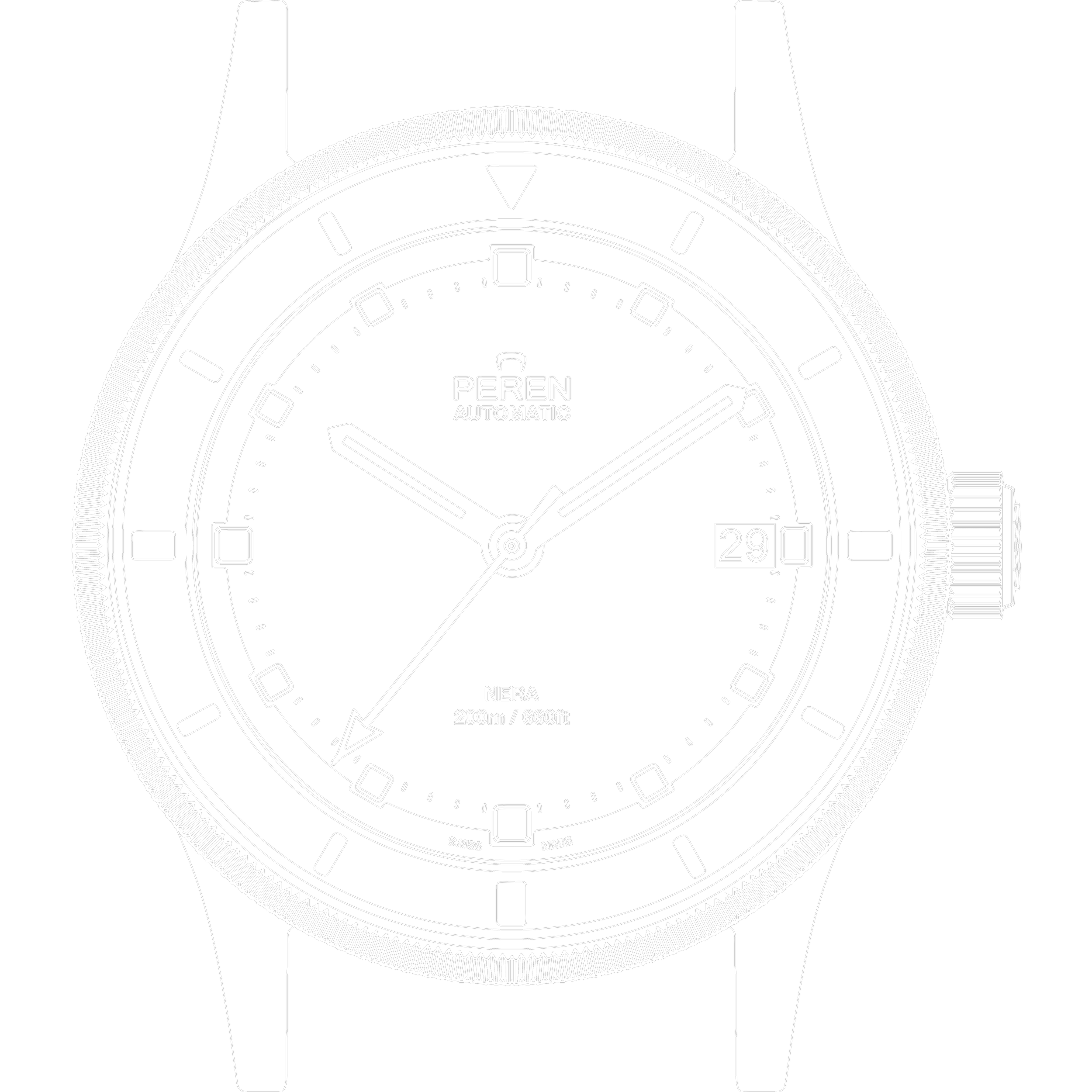 To better fit in our conventional timespace, the original Nera went rogue and further adjustments were implemented in order to improve its functionality. This was achieved with the addition of visible markers on the sterile bezel and knurlings on the outer bezel for better maneuverability.